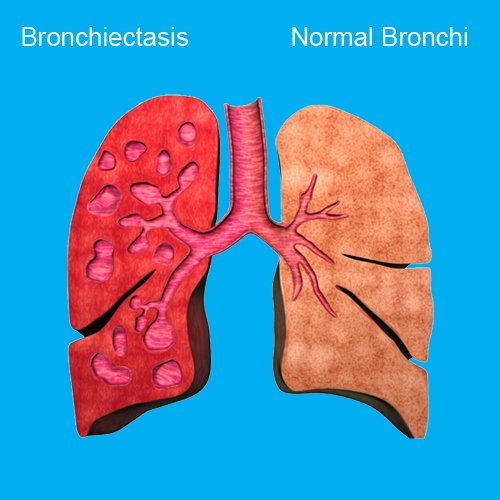 Scientifically, bronchiectasis is an abnormal widening of one or more airways where extra mucus collects in these abnormal airways—forming “humps.” This makes patients vulnerable to infections, with the main symptoms including persistent coughing that produces sputum, leading to constant fatigue. Patients often suffer from both bronchiectasis and chronic sinusitis, experiencing increased mucus discharge from the nose. Frequent chest infections are also a symptom, as excessive mucus provides an ideal environment for bacteria to multiply.